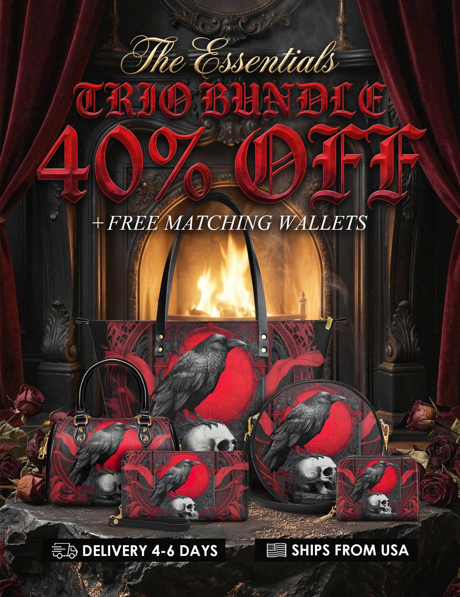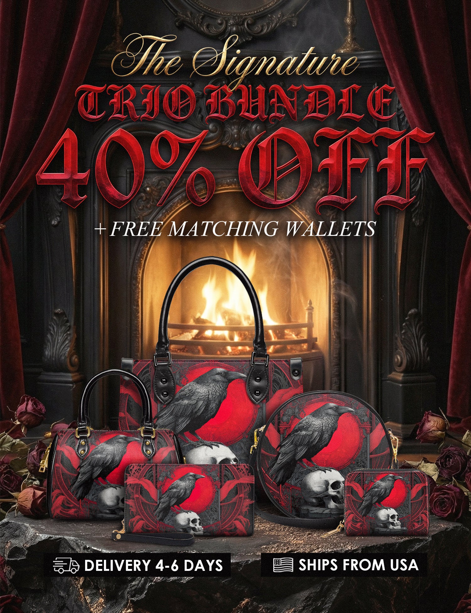 "Bloodraven" The Signature Trio Bundle (Small Leather Handbag)