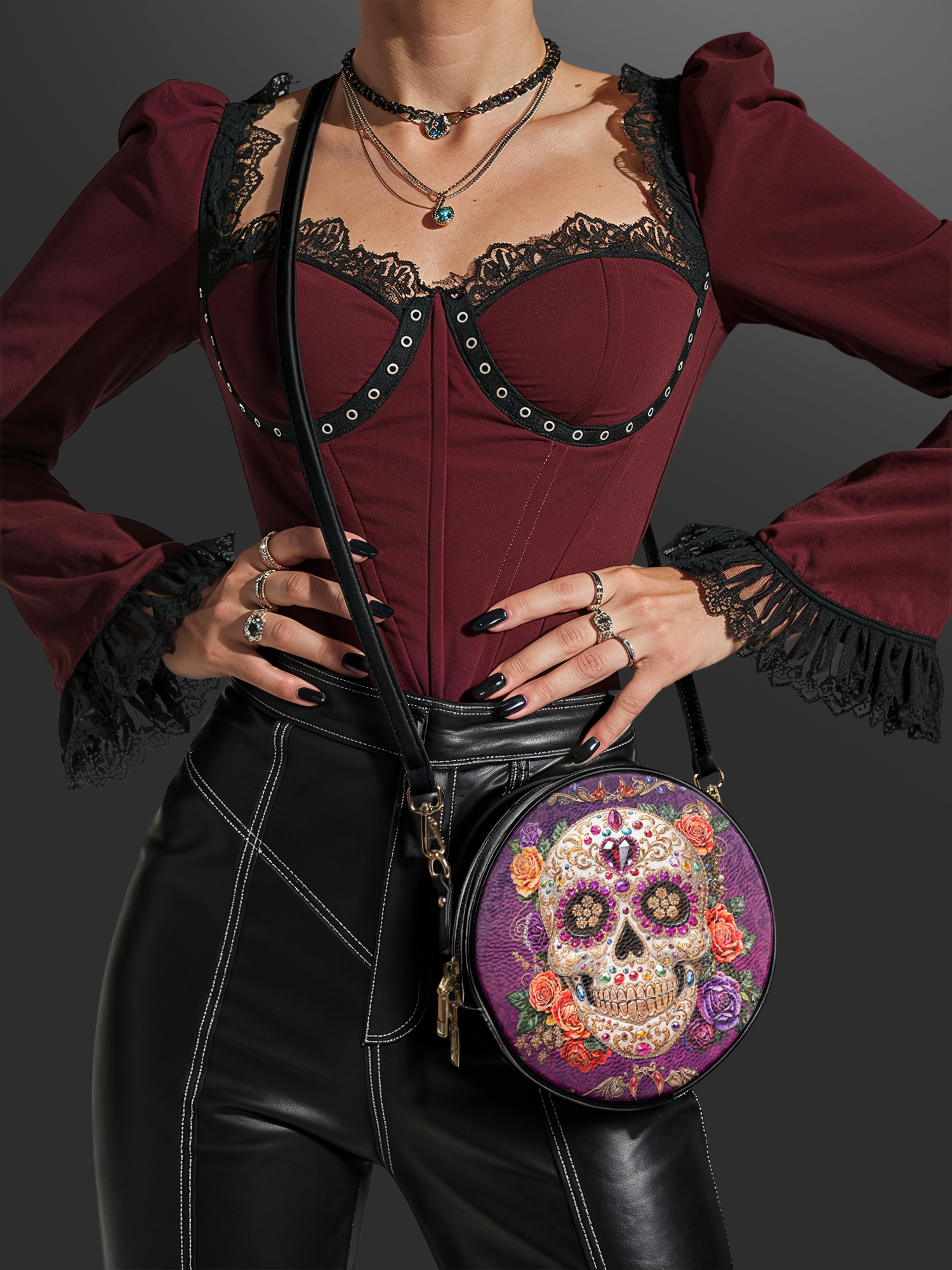 This circle crossbody bag brings together skull-inspired style and everyday function in one killer piece.