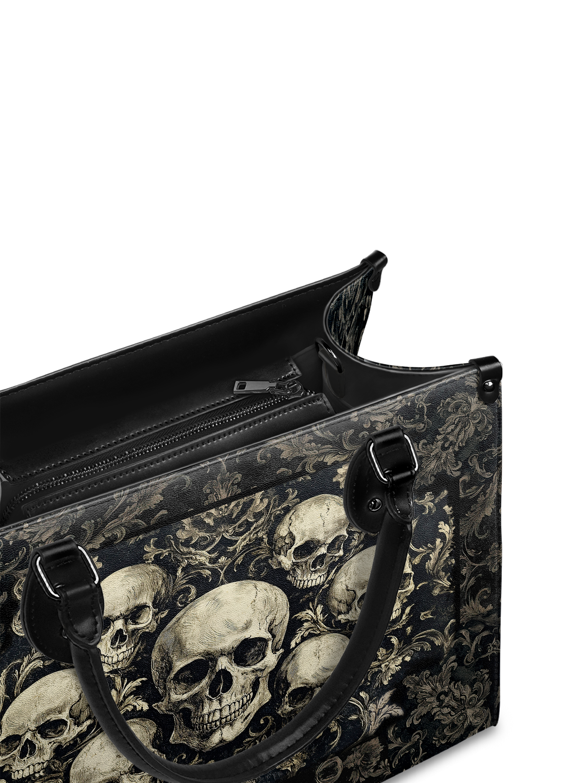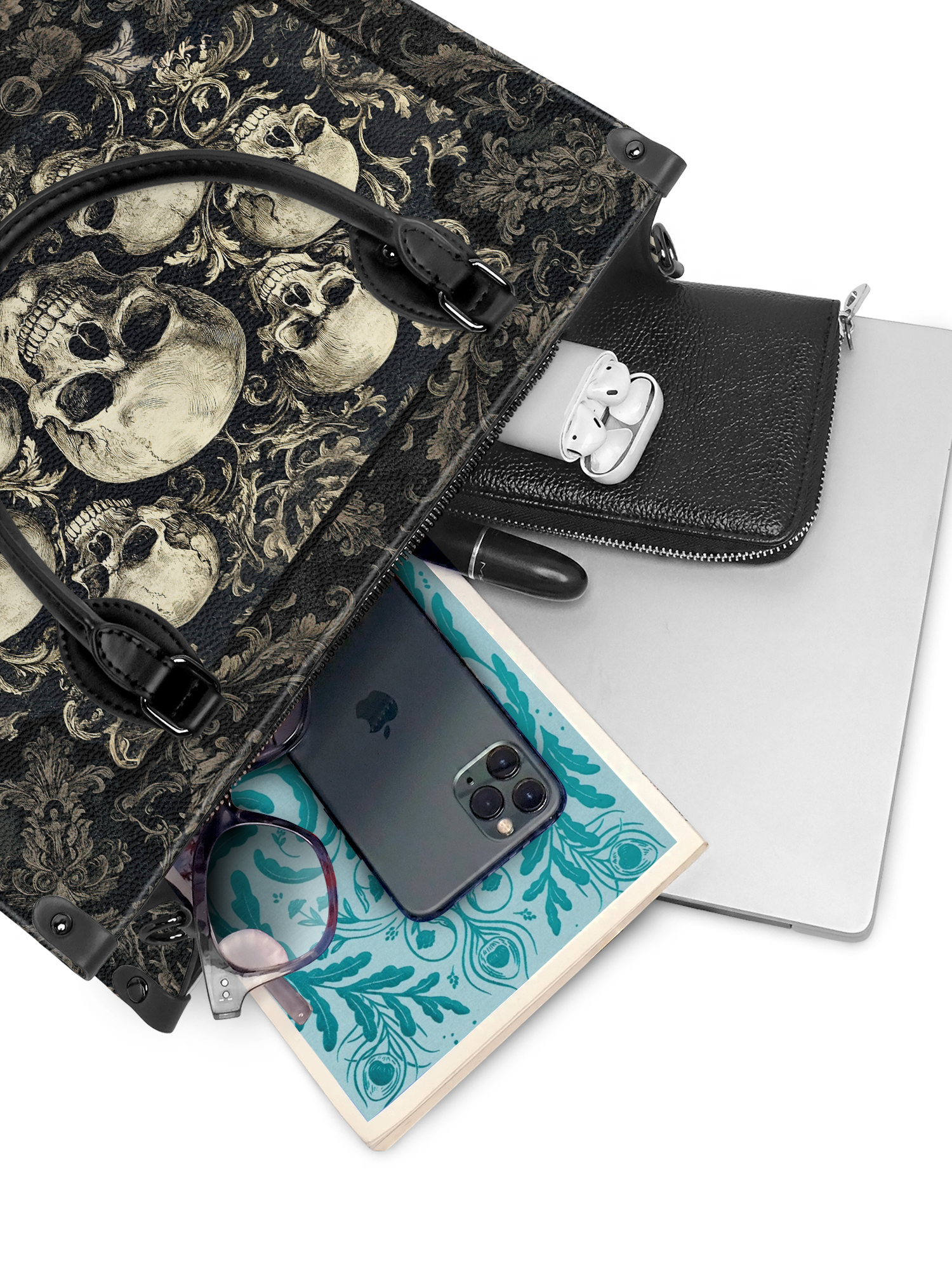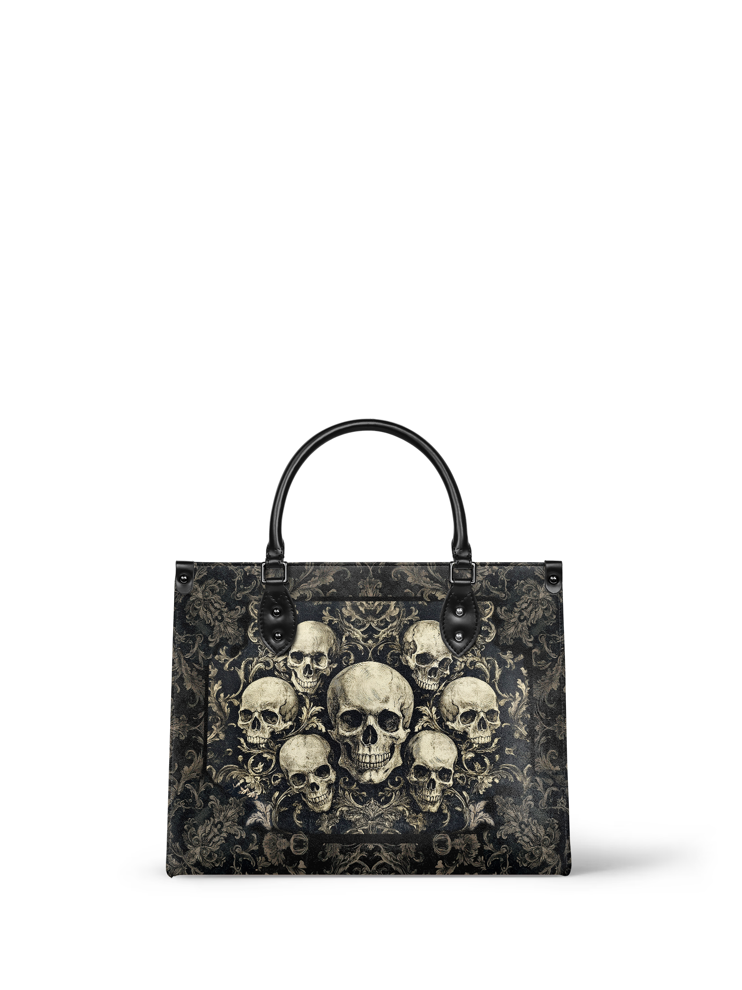 The "Deathmark" leather bag is dark, fierce, and unapologetically bold. With a haunting skull design on soft leather, it’s gothic glam at its finest. Big enough to carry your day—edgy enough to carry your vibe.