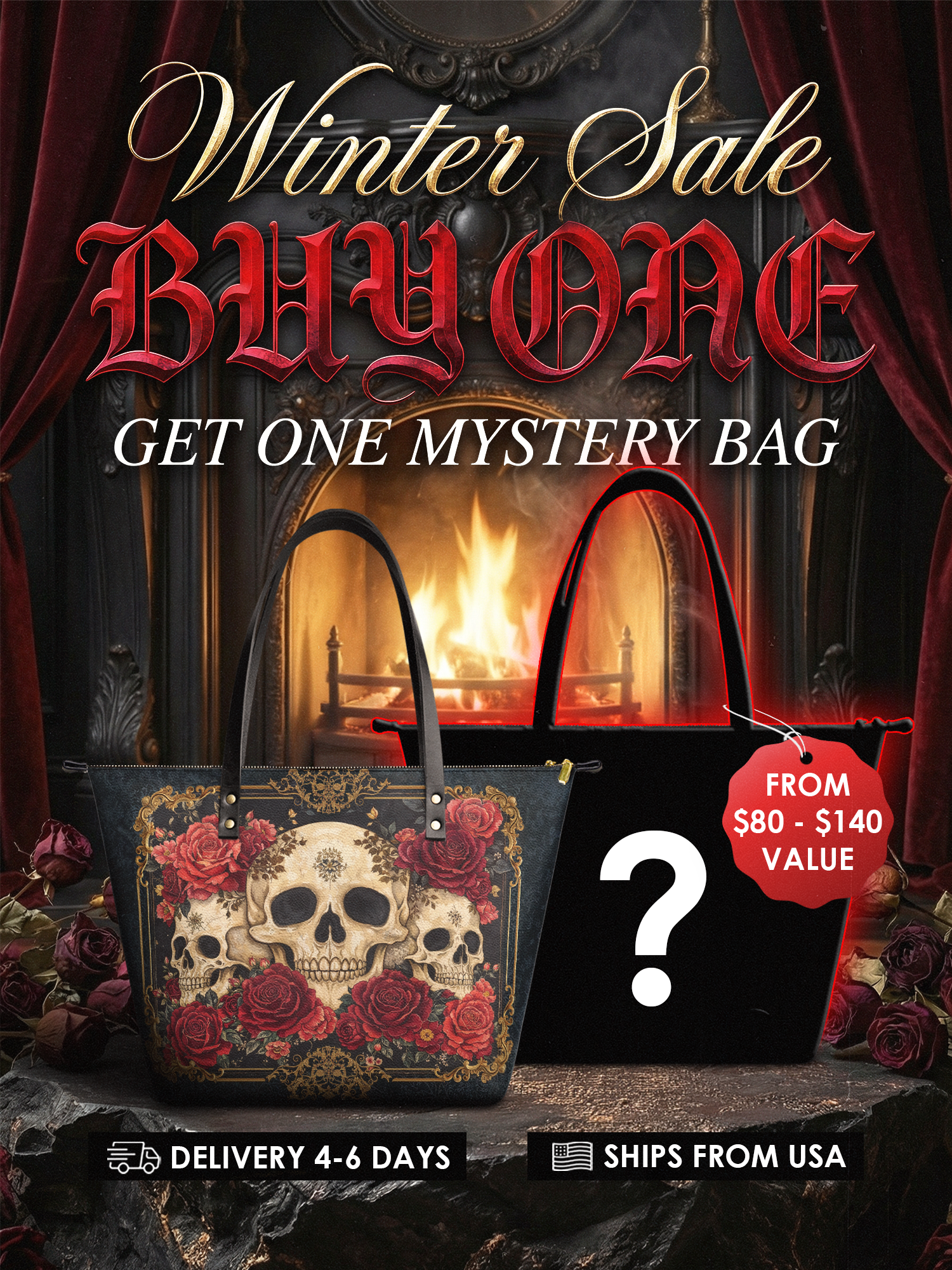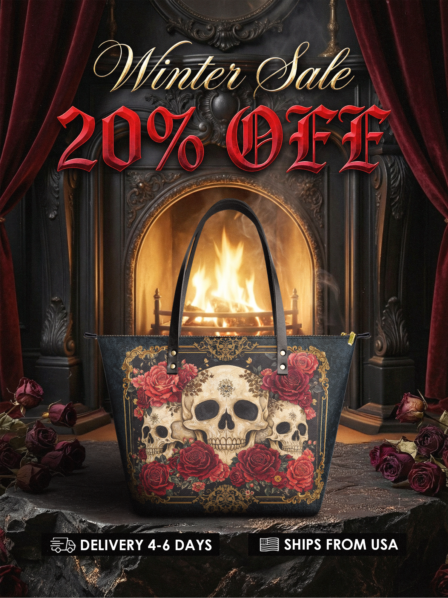 The "Bloodrose" leather tote is where dark beauty meets vintage drama. Skulls sit among crimson roses and gold flourishes, making this bag an unforgettable statement. It’s roomy, zip-secure, and ready to rule any room you walk into.