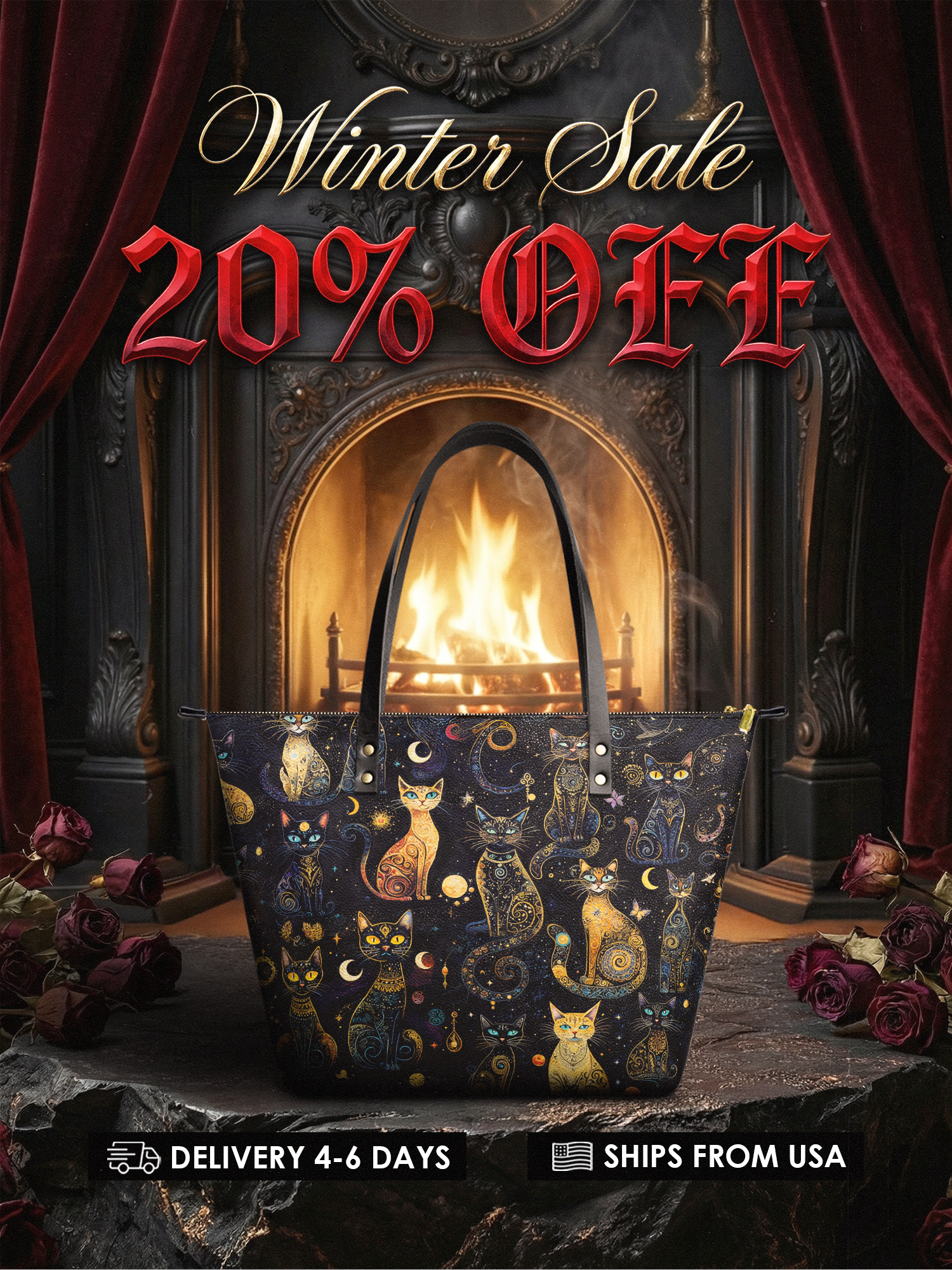 The Lunacat leather tote bag is a cosmic celebration of feline elegance and lunar magic. Drenched in a starlit navy sky, this roomy tote features an enchanting lineup of celestial cats—each swirling with golden moons, constellations, and mystical charm. The tall silhouette and sturdy handles make it the perfect carry-all for dreamers, stargazers, and cat lovers alike. Whether you're heading to the bookstore, the market, or a moonlit stroll, this bag adds a touch of mystery and magic to every step. Let your style orbit in its own galaxy with Lunacat.