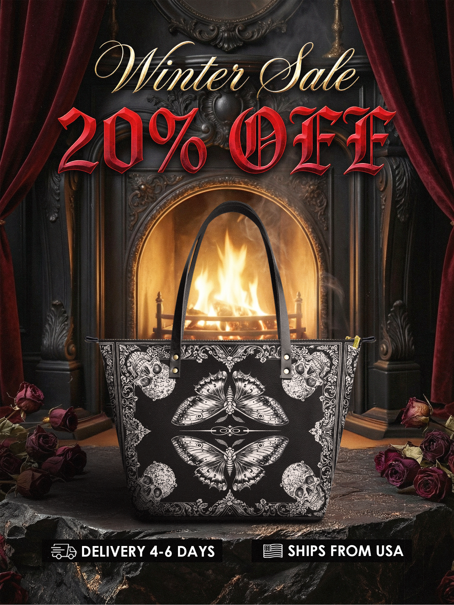 The Morthwing leather tote bag is where dark elegance takes flight. With its striking moth-and-skull motif framed in intricate gothic flourishes, this design evokes the mystique of transformation, mortality, and rebellion. The symmetrical black-and-white artwork commands attention while remaining effortlessly wearable. Crafted from premium vegan leather, this spacious tote offers room for all your essentials—whether you're headed to a bookshop, a concert, or a midnight stroll. It’s more than a bag—it’s a gothic spell wrapped in leather.