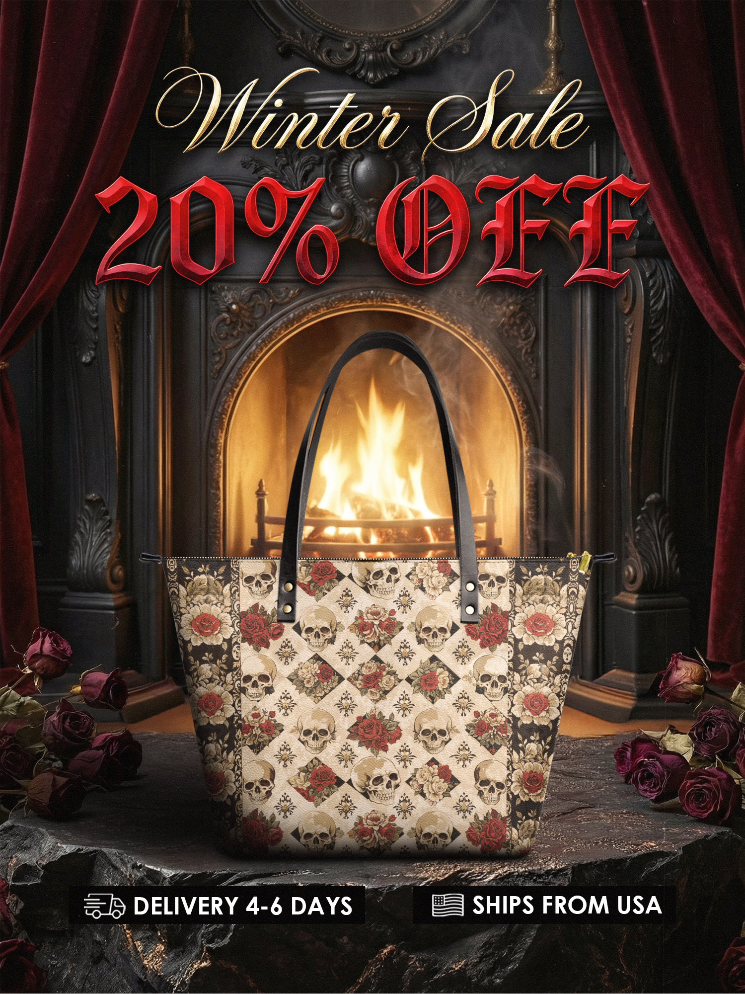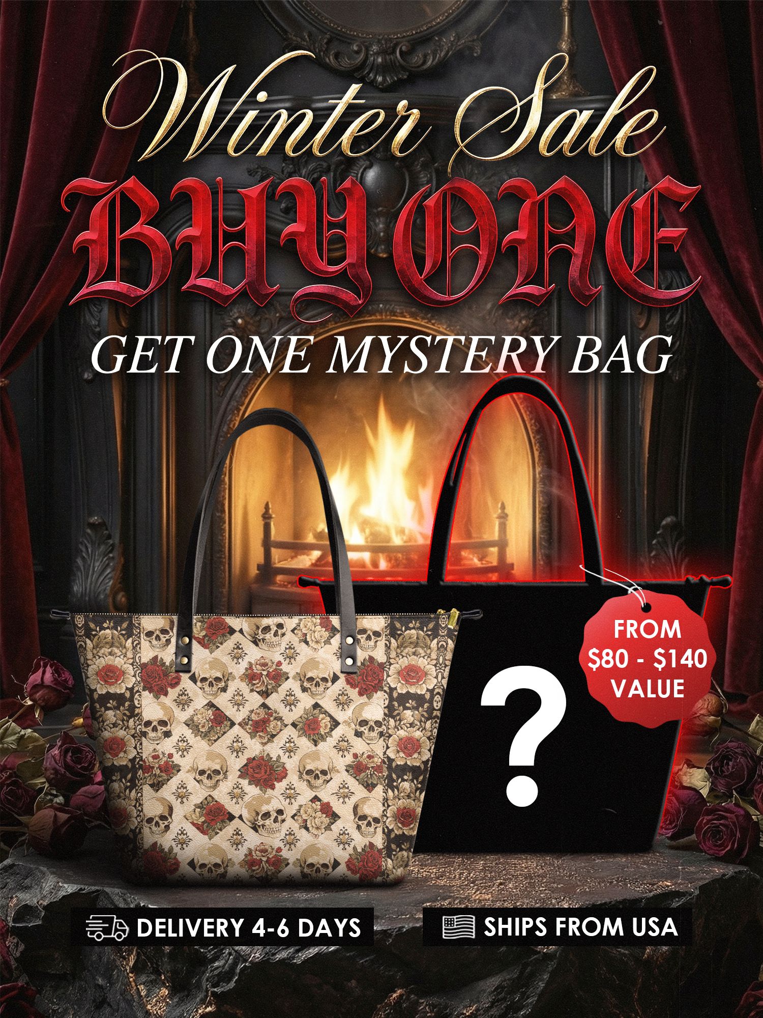 The "Mournaire" leather tote is soft, roomy, and bold in all the right ways. Skulls and roses cover every inch—because your style deserves a little drama. It zips up easy, holds a ton, and turns heads without even trying.