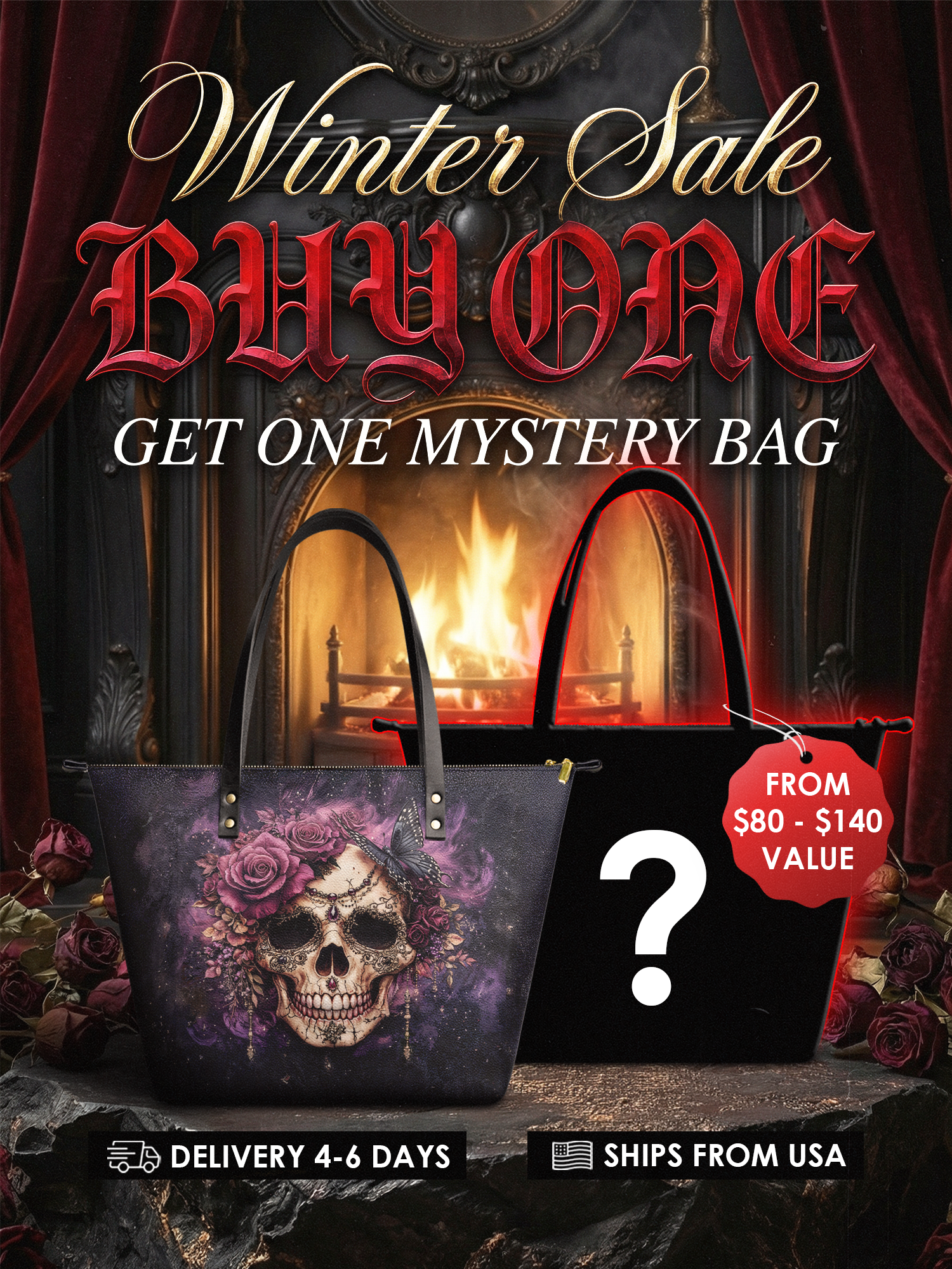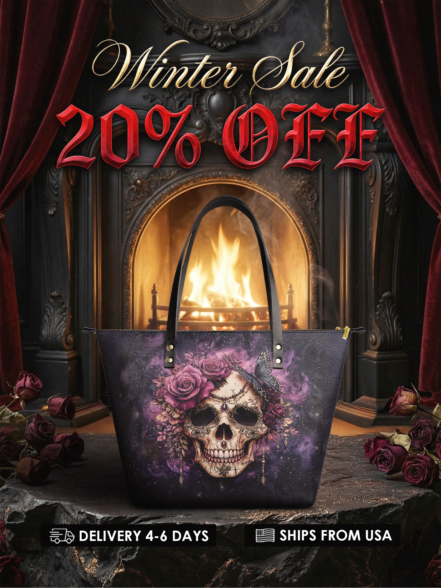 The Noxaria leather tote bag is gothic elegance reimagined. A hauntingly beautiful skull crowned with lush plum roses, delicate gold chains, and a resting black butterfly creates a striking centerpiece—set against a swirling backdrop of deep space purples and shadows. This spacious tote is crafted from buttery soft vegan leather, designed for those who carry darkness with grace. Whether you're wandering moonlit streets or heading into the everyday unknown, Noxaria is your bold companion.