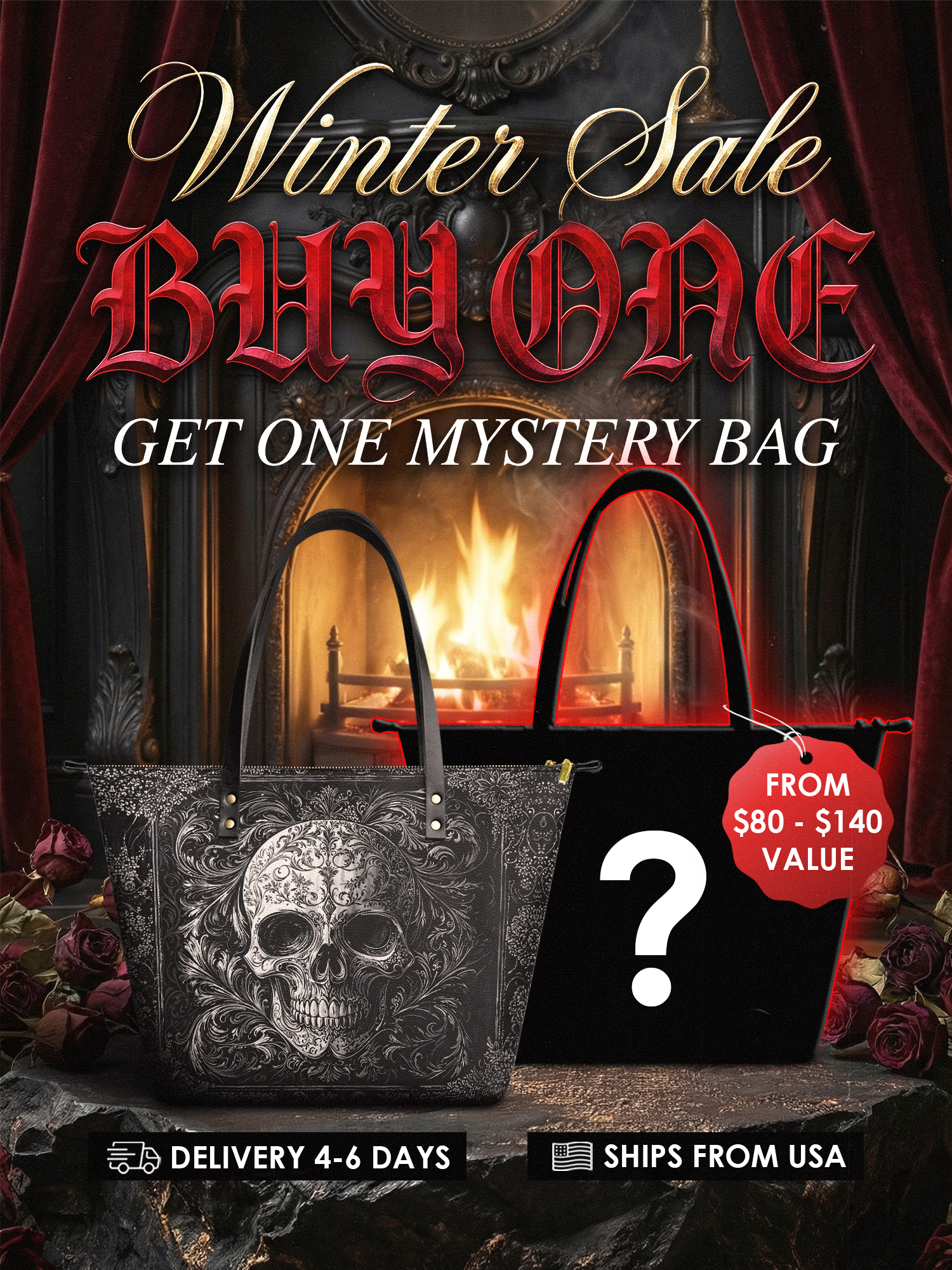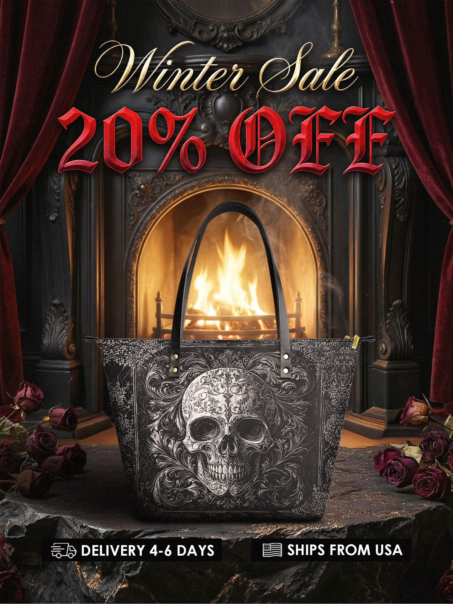 The Obscuria leather tote bag is your new go-to for dark, commanding style. A hauntingly ornate skull emerges from a swirl of gothic filigree—etched in silver over deep black vegan leather. It's bold. It's baroque. And it carries serious attitude. With long shoulder straps and a roomy zippered interior, this tote blends function with fierce fashion. Whether you’re headed to the bookstore, coffee shop, or the shadows of the night—Obscuria makes sure you arrive in statement-making style.