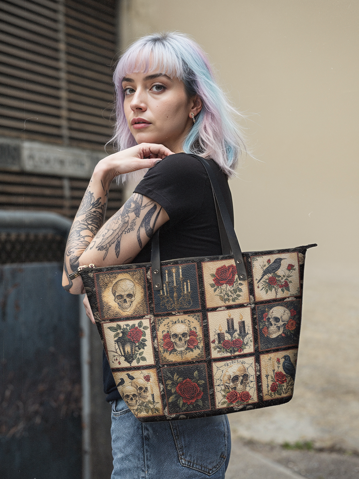 "Blacklitany" Leather Tote Bag
