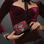 Bold, fiery, and unapologetically alive—meet the La Roja mini wallet. Named after the Spanish word for “red,” this piece bursts with passion and power. At its center, a striking sugar skull smiles through a sea of crimson roses, celebrating life, death, and everything in between. It’s a tribute to beauty that doesn’t fade—and a fierce little companion for those who carry their spirit out loud.