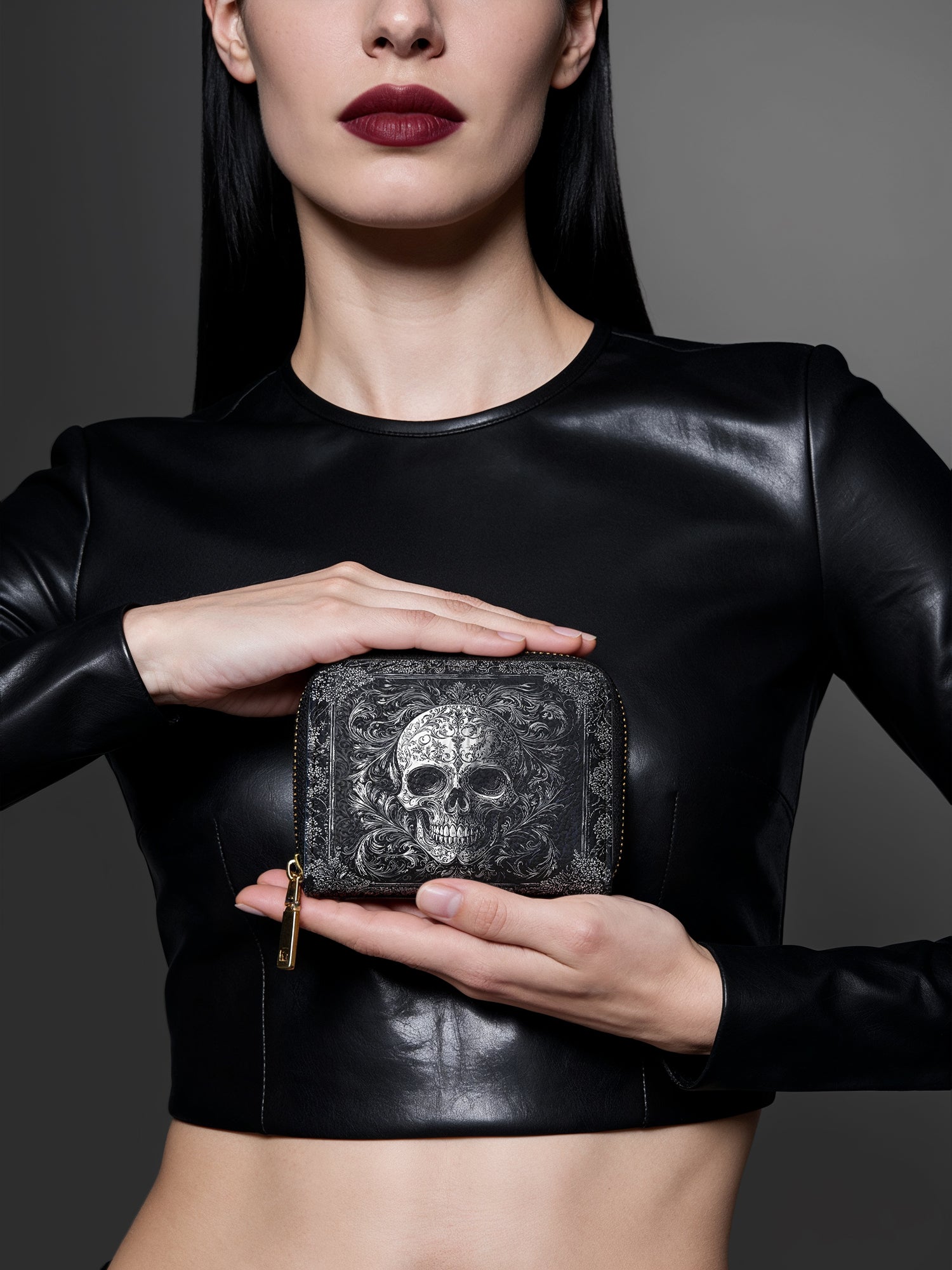 Finished with a smooth zipper and a bold, no-fuss silhouette that slips into any bag or pocket with ease. Perfect for nights out, quick runs, or keeping things light.
