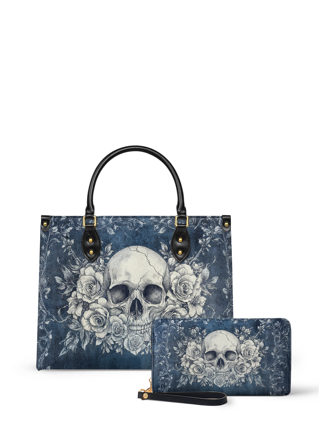 The "Frostmourne" leather bag is icy blue with a haunting floral twist. That skull? Softly fierce. The roses? Frozen in time. Made with buttery leather and black handles, it’s the kind of bag that whispers power.