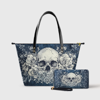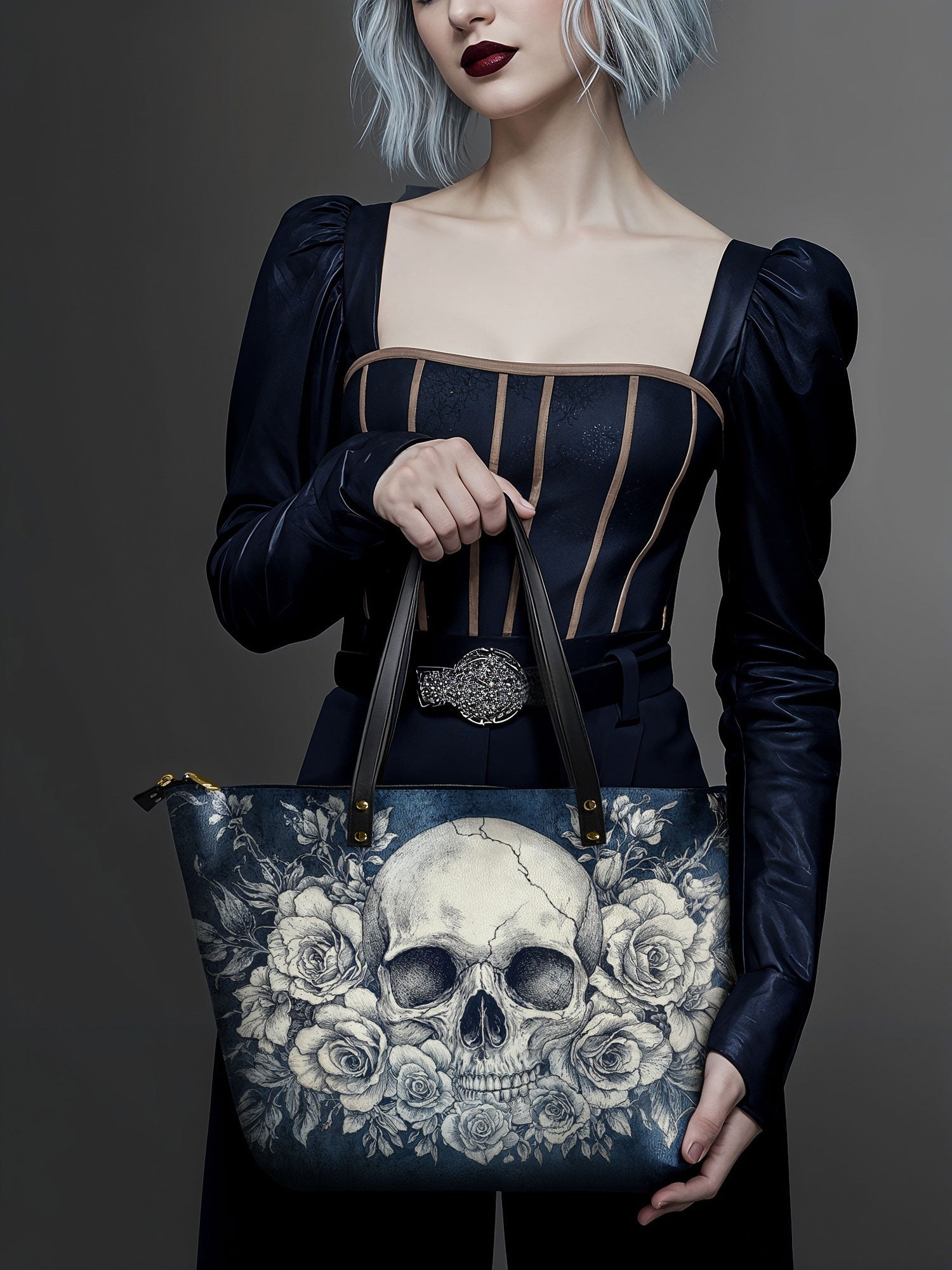 The "Frostmourne" leather tote brings serious chill with a soft blue backdrop and a haunting skull wrapped in white roses. It’s roomy, zips up smooth, and makes a quiet statement that speaks volumes.