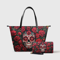 The "La Roja" leather tote is full of life and attitude, wrapped in red roses with a vibrant sugar skull at the center. It’s roomy, zip-secure, and impossible to ignore.
