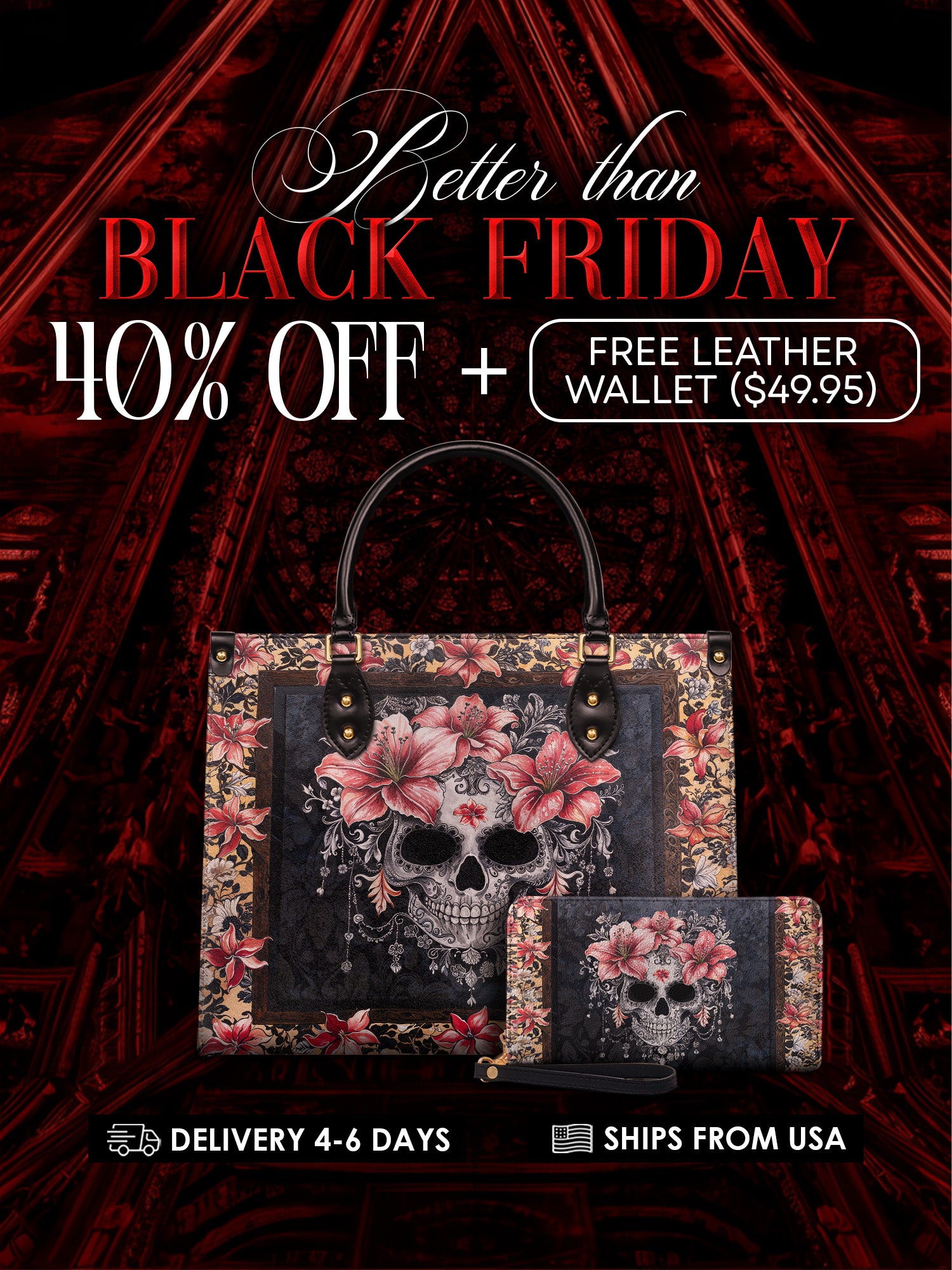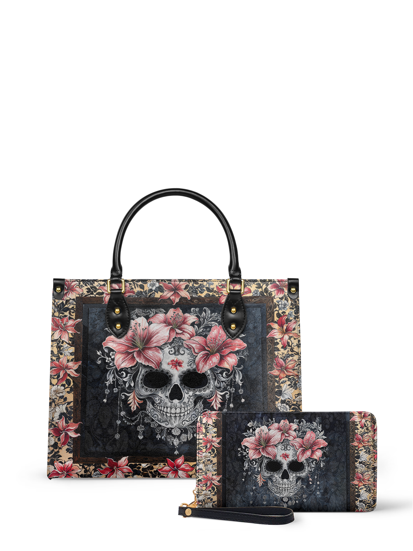 Meet the "Roselace" leather handbag — where gothic romance meets timeless luxury. Featuring a delicate skull adorned with blooming lilies, this bold statement piece turns every glance into a double take. Crafted from premium leather with sleek black handles, it’s the perfect blend of dark beauty and everyday elegance.