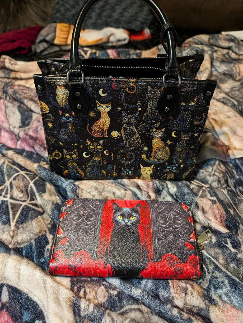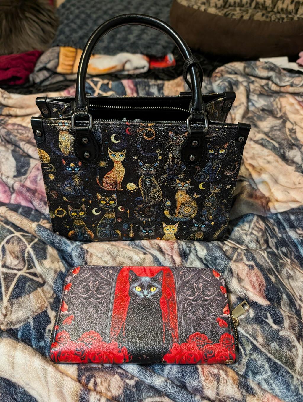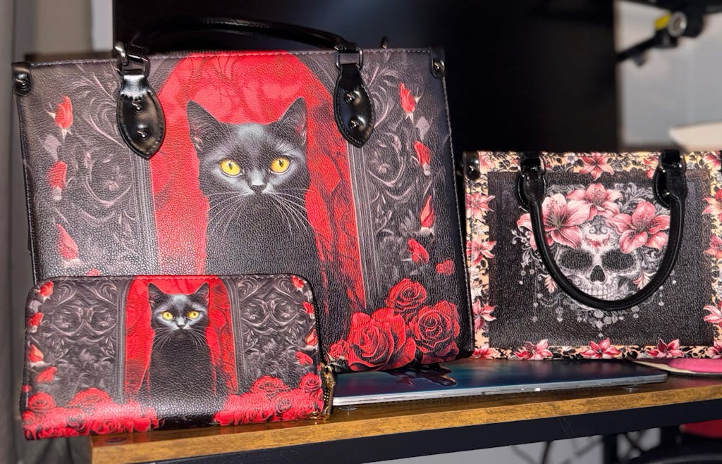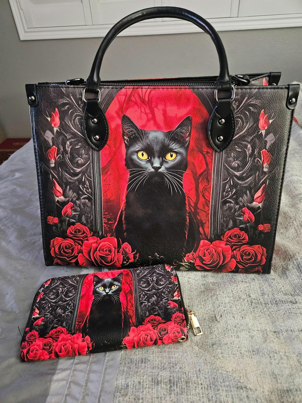 I'm absolutely purr-fectly thrilled with my purchase! The black cat purse and wallet are gorgeous - they look super high-end and the size is just right. And, oh my, the bonus bag with the skull design and flowers? What a fabulous surprise! The speed was incredible, and the service top notch! Thanks so much! I will definitely shop here again !