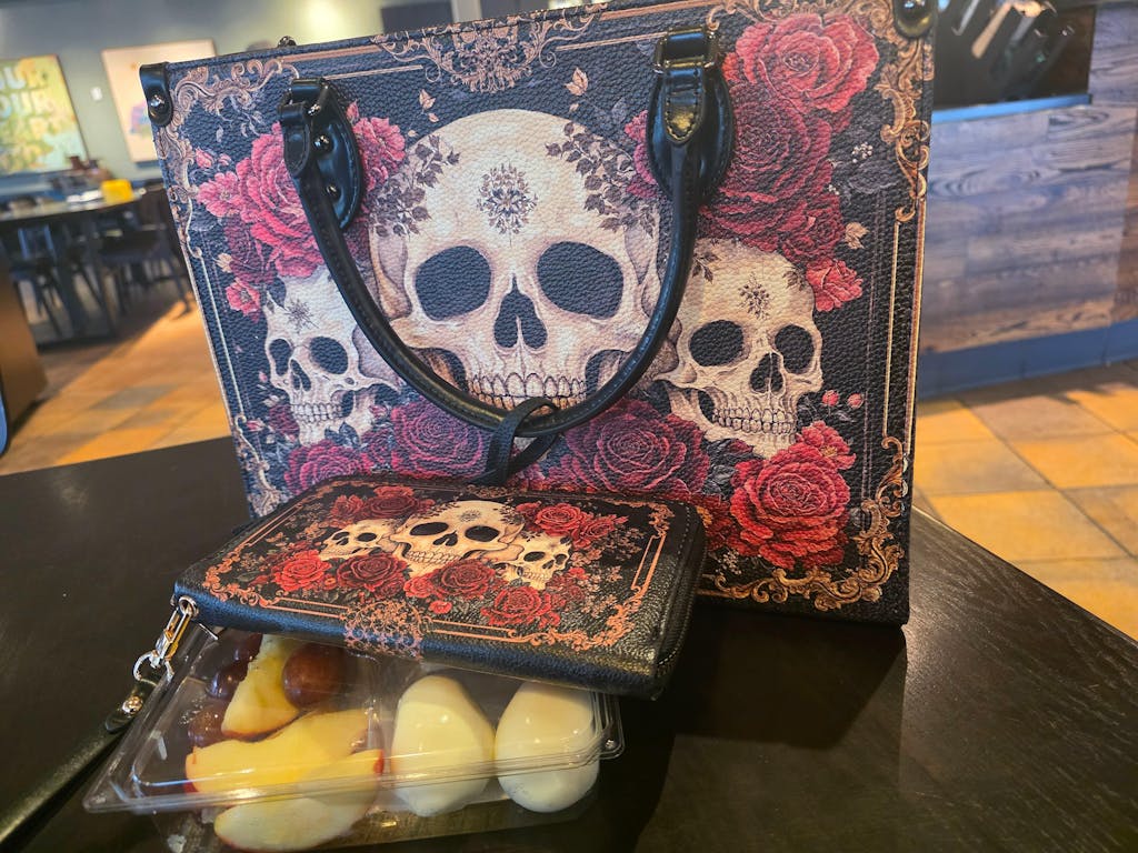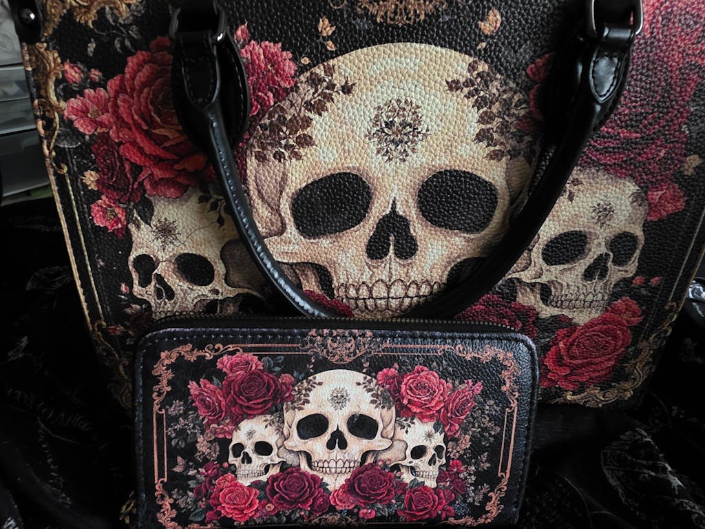 I am absolutely thrilled with my new Blood Rose interior leather handbag and wallet! I opted for the Italian leather version, which is incredibly soft to the touch. The craftsmanship is exceptional, both inside and out, and I appreciate the additional strap included at the bottom of the purse for those who prefer not to wear it on their wrist. This is my first purchase from the company, and it has quickly become a statement piece for me. I've received countless compliments on the stunning artistry, particularly the striking balance between the bold skulls and the delicate roses. The wallet is impressively spacious, providing ample room for cash and credit cards, and even features a handy clip for easy access to ATM cards, which is a thoughtful touch for those with long nails. Overall, I am extremely satisfied with this bespoke piece and eagerly anticipate my next purchase. Whether you choose to buy the handbag and wallet together or separately, both are well worth the investment. Enjoy!