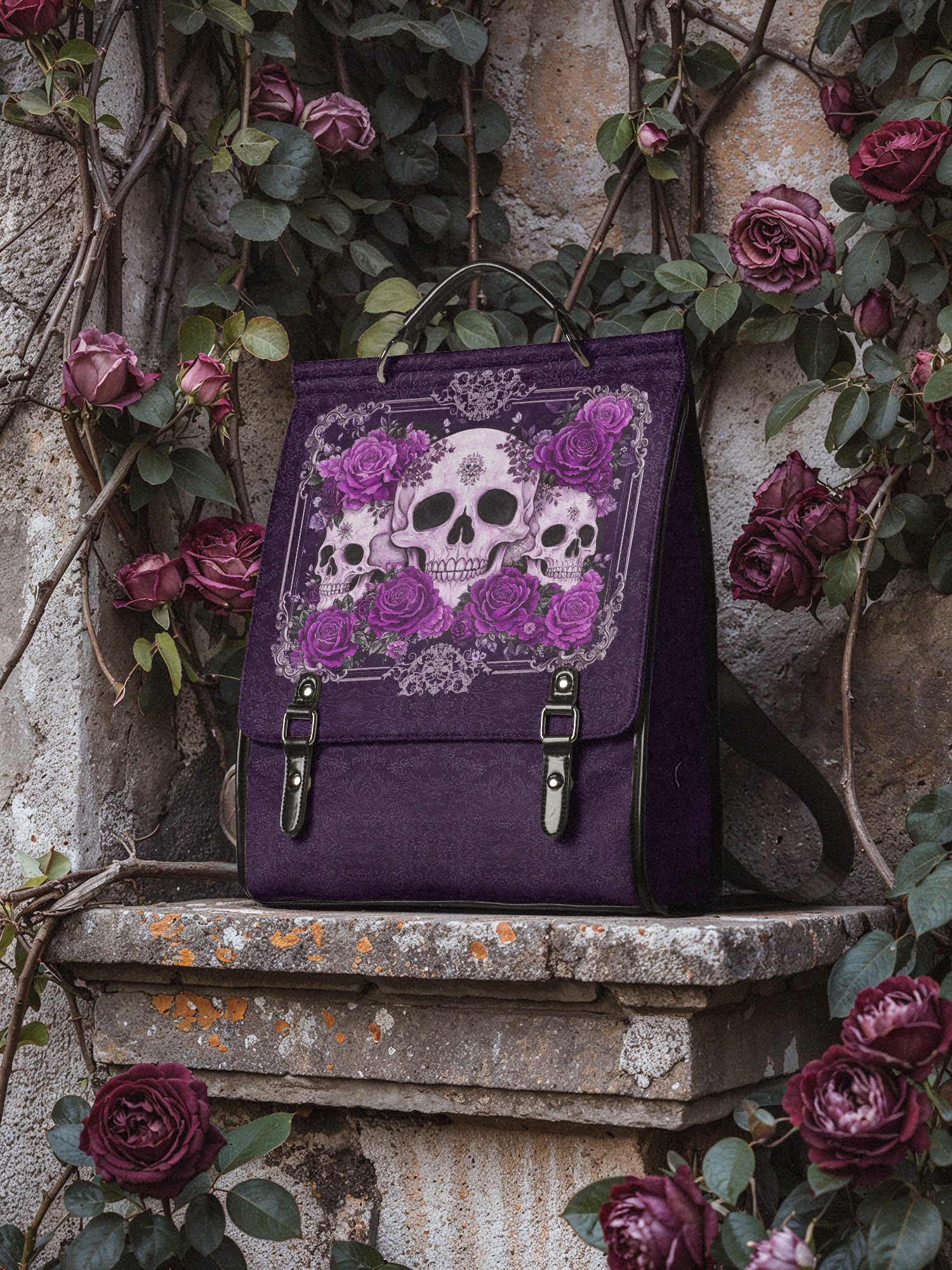 "Bloodrose" Poison Plum Leather Backpack