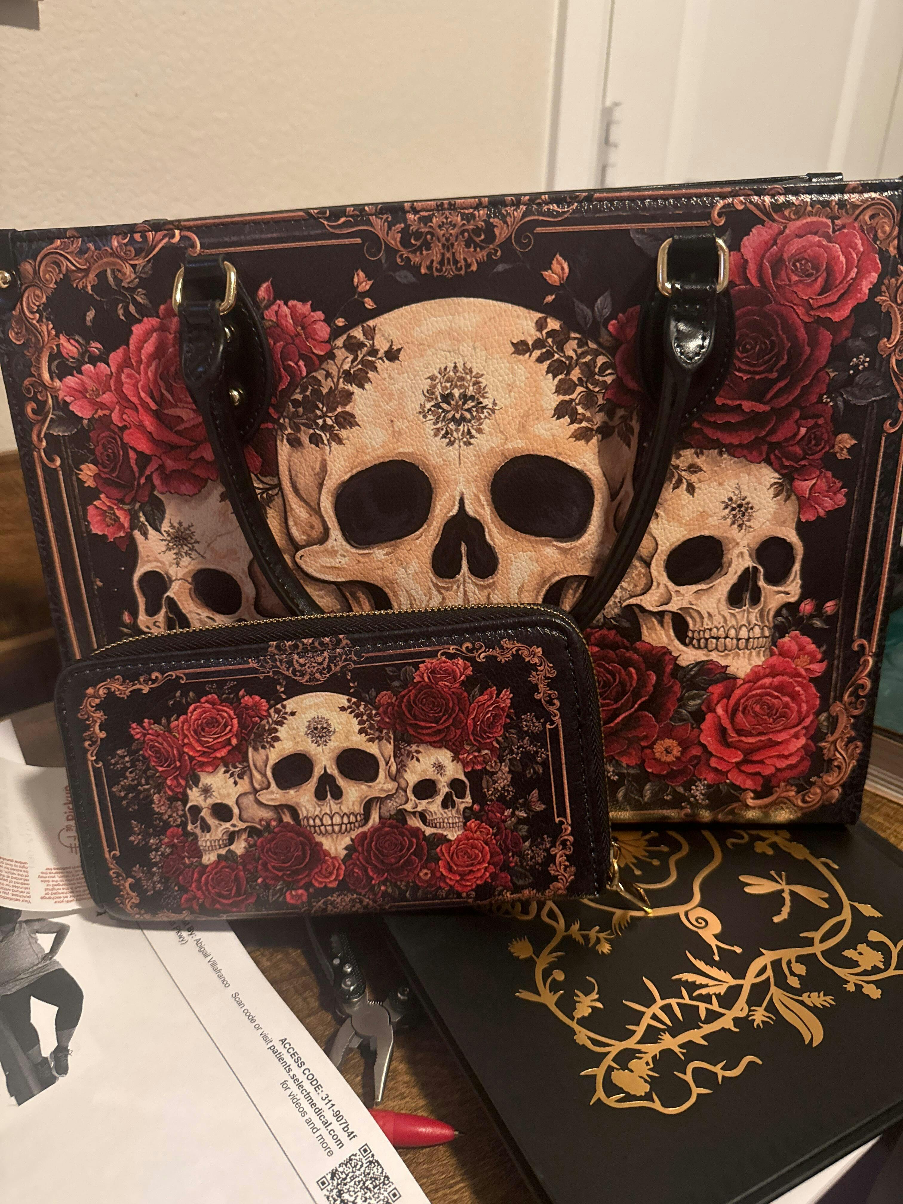 The "Deathmark" leather bag is dark, fierce, and unapologetically bold. With a haunting skull design on soft leather, it’s gothic glam at its finest. Big enough to carry your day—edgy enough to carry your vibe.