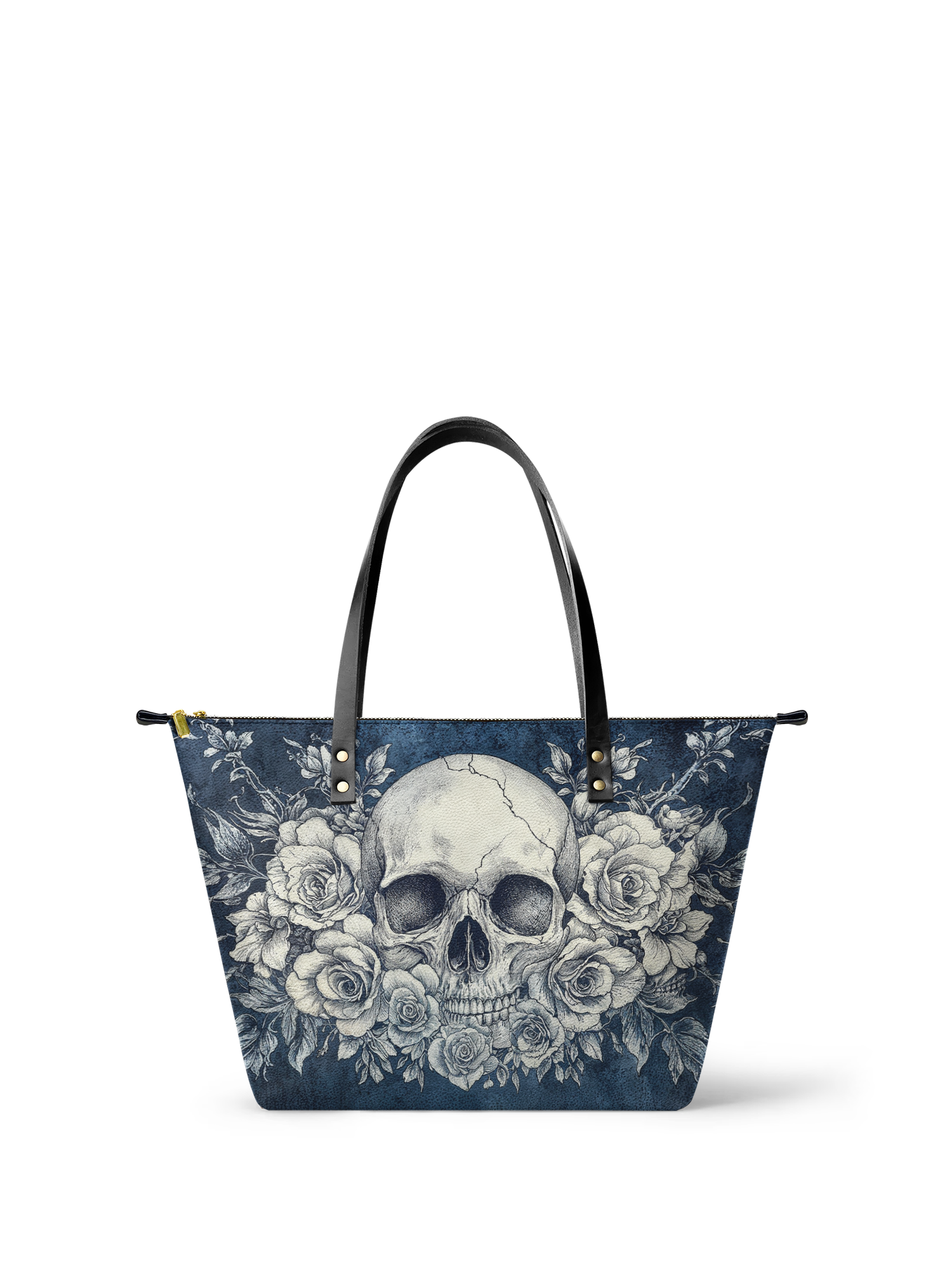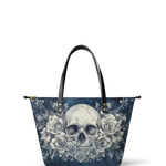 The "Frostmourne" leather tote brings serious chill with a soft blue backdrop and a haunting skull wrapped in white roses. It’s roomy, zips up smooth, and makes a quiet statement that speaks volumes.