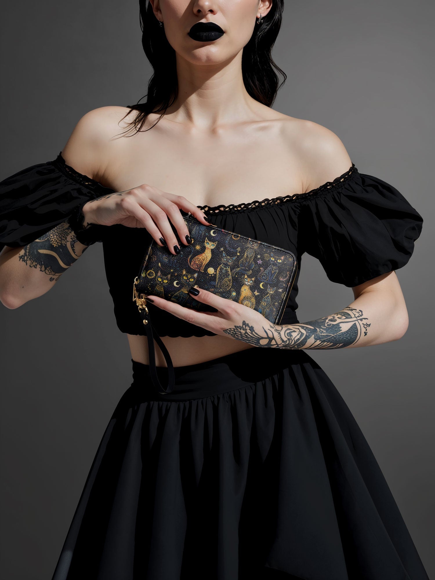 This wallet is spacious and stylish, holding beauty essentials, cash, cards, and a phone with ease.