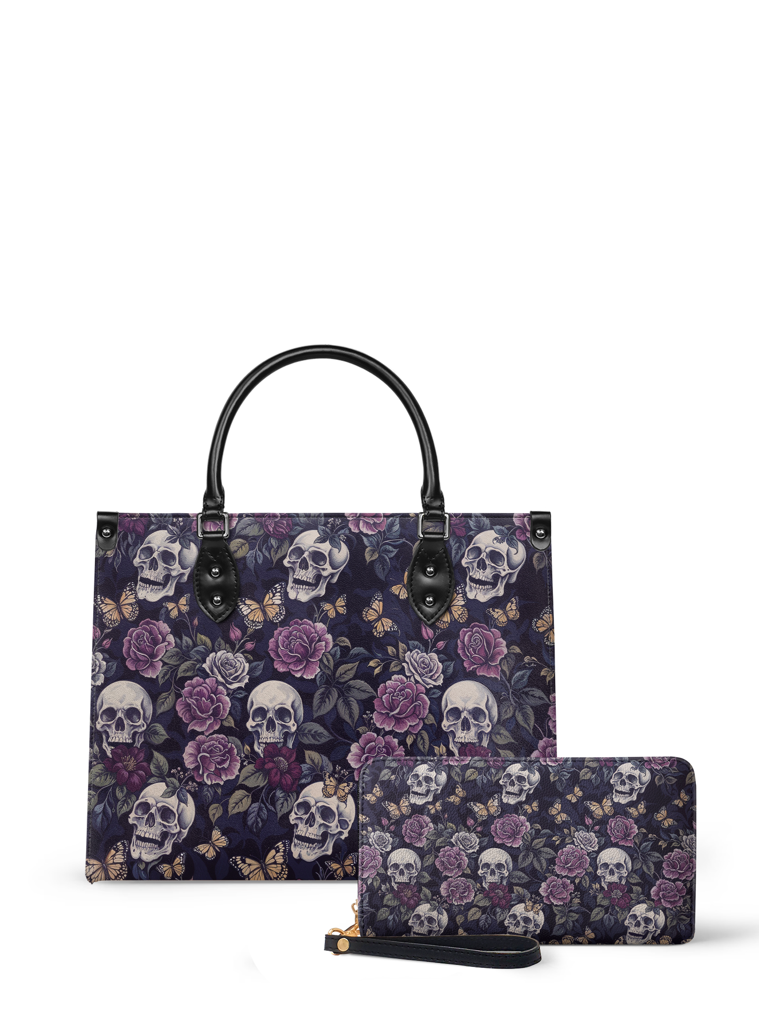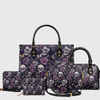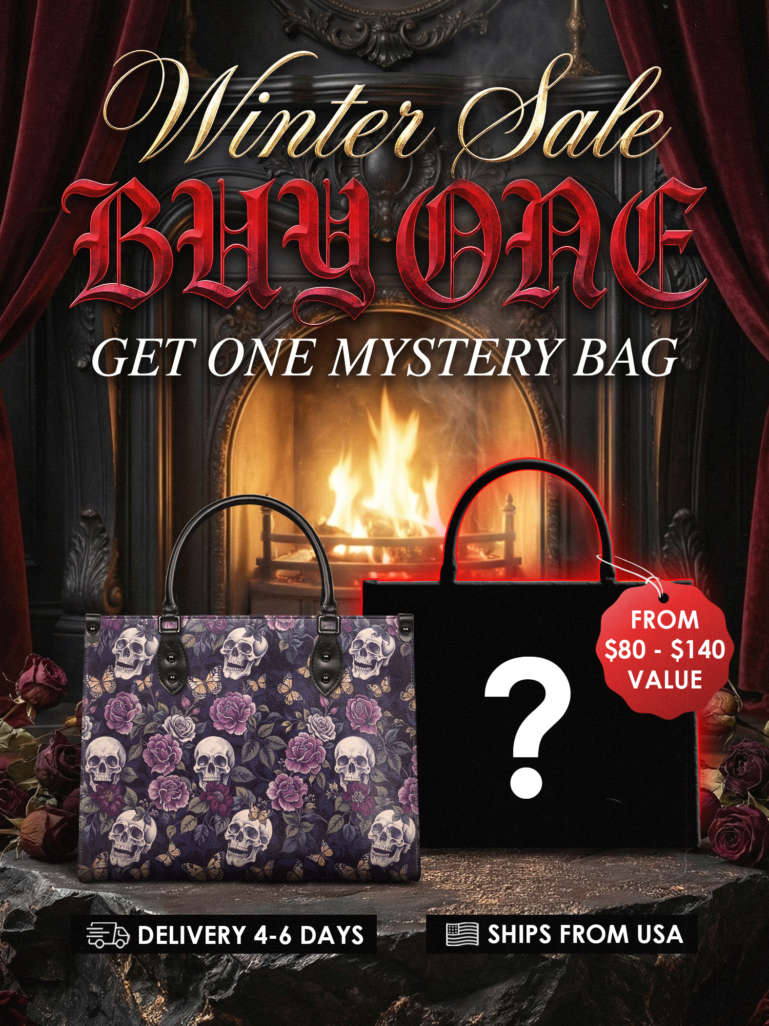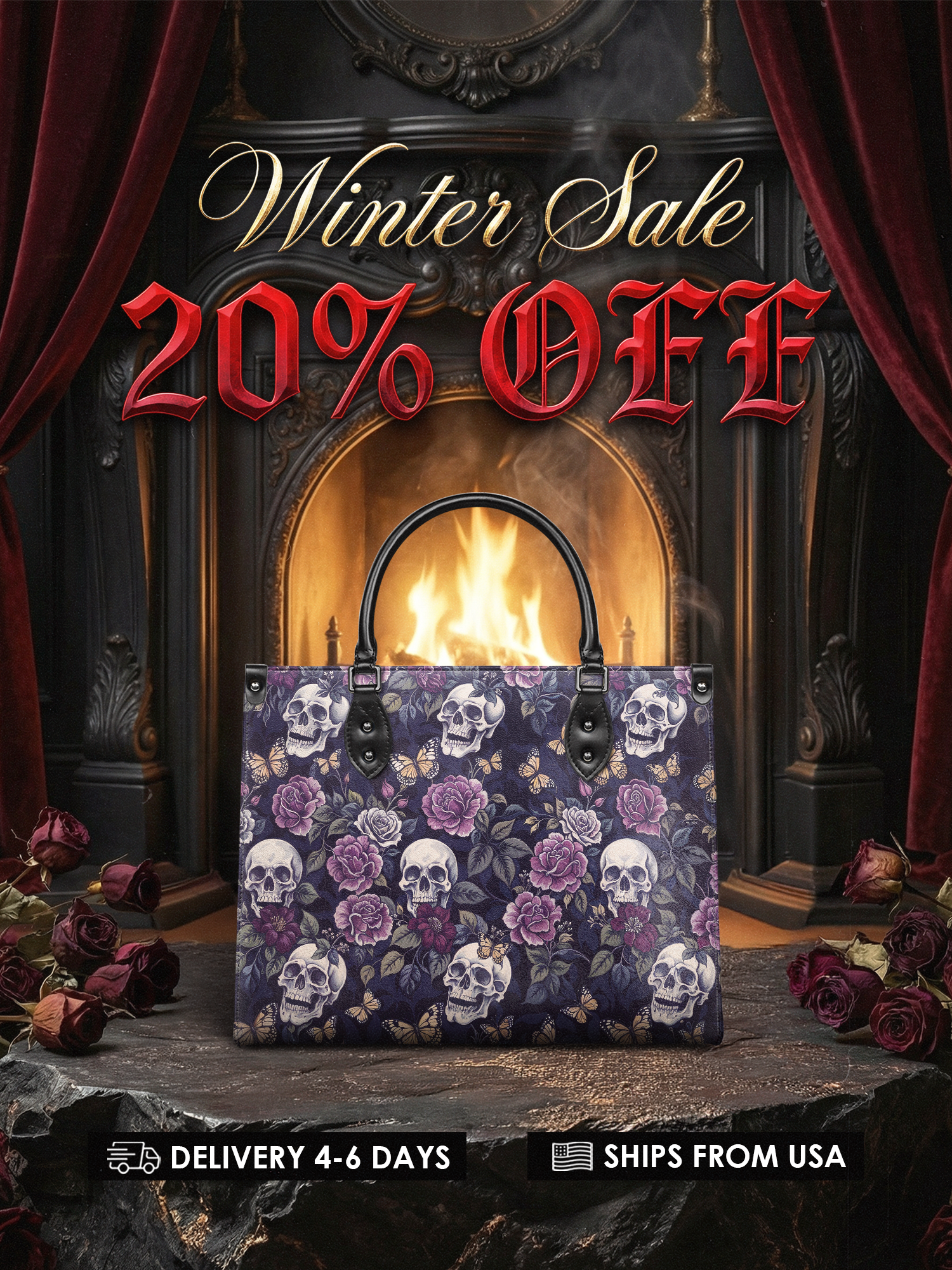 The "Noctaflora" leather bag blends soft florals with skulls and butterflies for the perfect mix of beauty and edge. With deep purples, creamy bones, and golden wings, it’s got a whole mood.